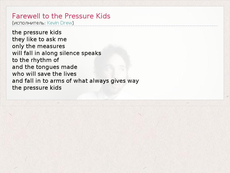 ГлавнаяИсполнителиKevin DrewFarewell to the Pressure Kids