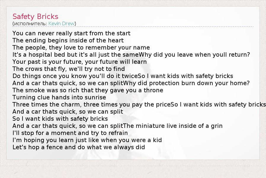 А как ты думаешь, о чем песня "Safety Bricks" ?