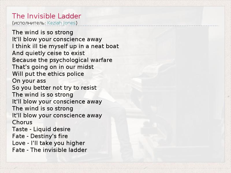 А как ты думаешь, о чем песня "The Invisible Ladder" ?