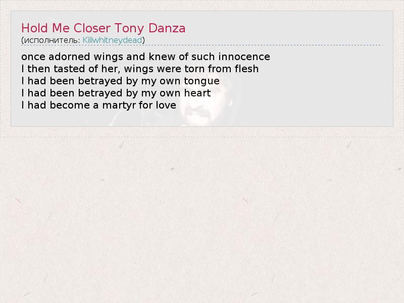 ГлавнаяИсполнителиKillwhitneydeadHold Me Closer Tony Danza