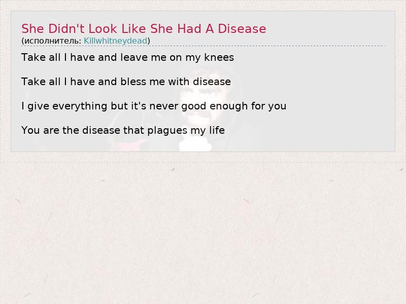 ГлавнаяИсполнителиKillwhitneydeadShe Didn't Look Like She Had A Disease