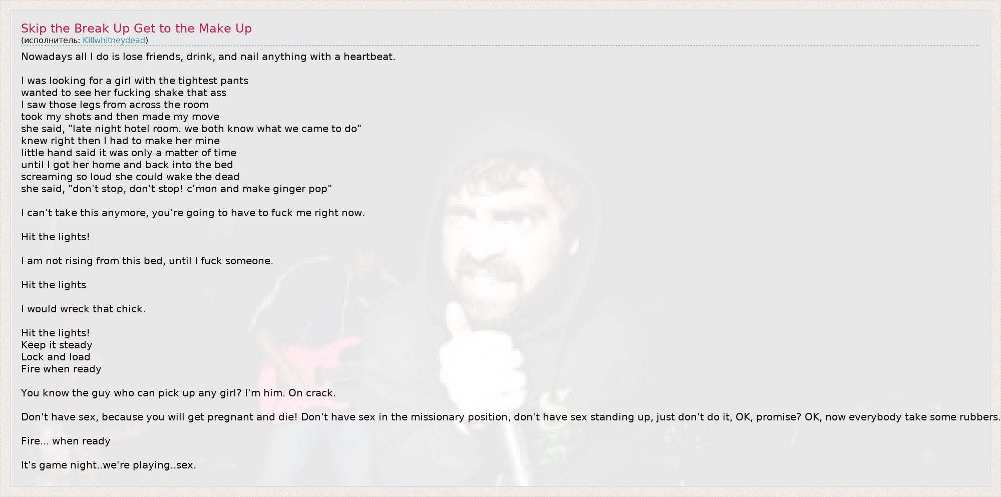 А как ты думаешь, о чем песня "Skip the Break Up Get to the Make Up" ?