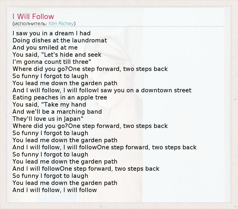 А как ты думаешь, о чем песня "I Will Follow" ?