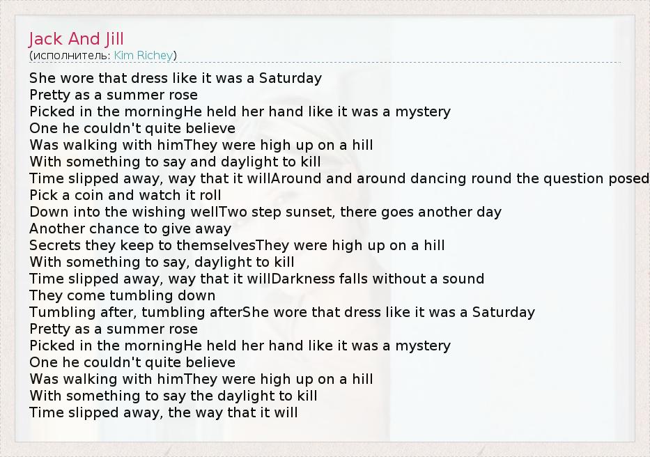 А как ты думаешь, о чем песня "Jack And Jill" ?