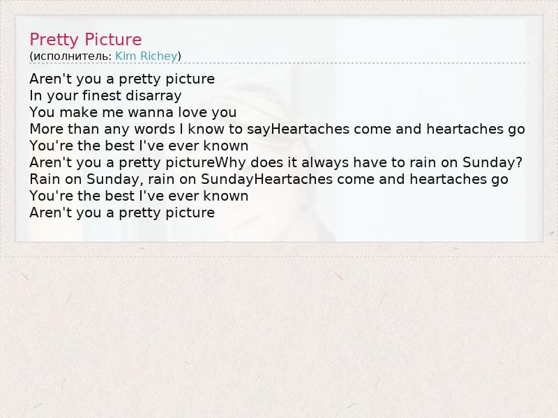 А как ты думаешь, о чем песня "Pretty Picture" ?