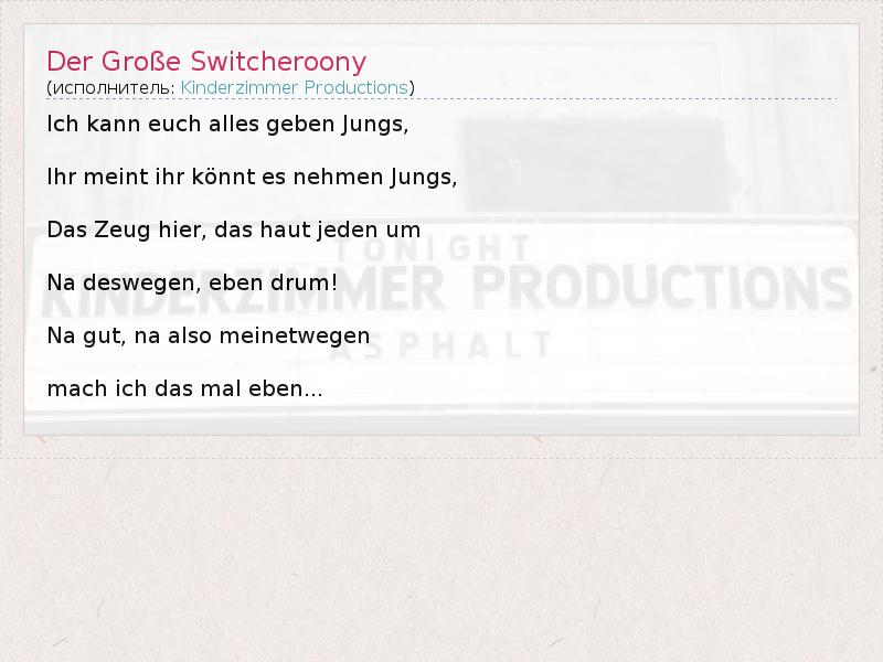 А как ты думаешь, о чем песня "Der Große Switcheroony" ?