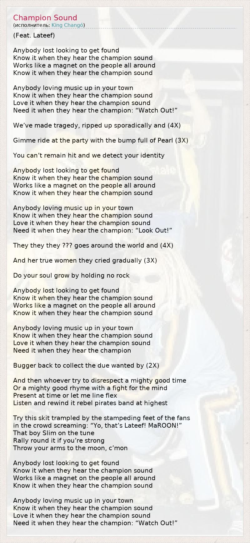 А как ты думаешь, о чем песня "Champion Sound" ?