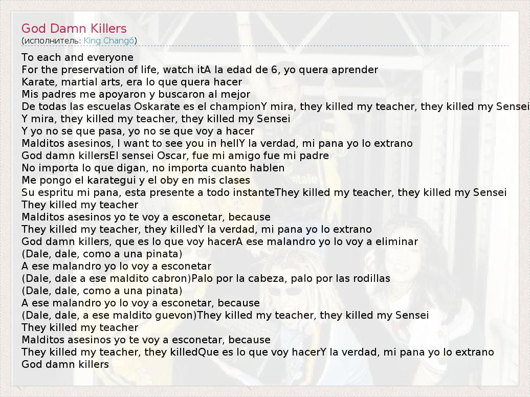 А как ты думаешь, о чем песня "God Damn Killers" ?