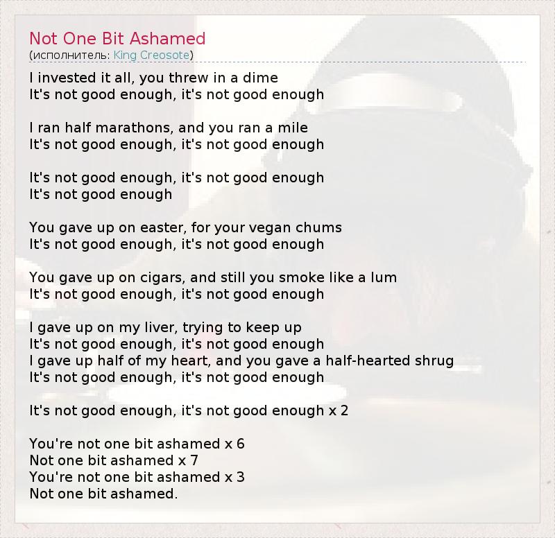 А как ты думаешь, о чем песня "Not One Bit Ashamed" ?