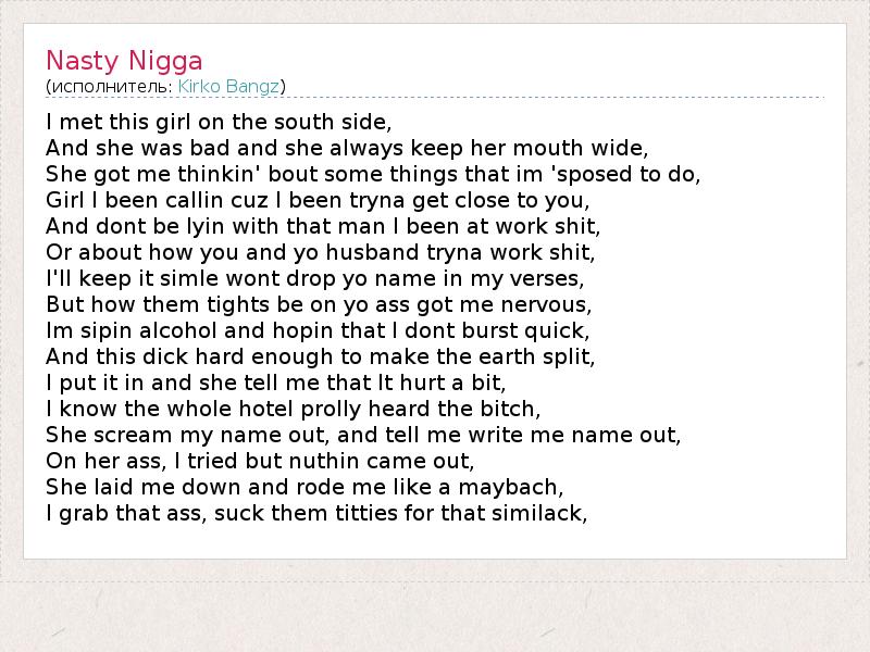 А как ты думаешь, о чем песня "Nasty Nigga" ?