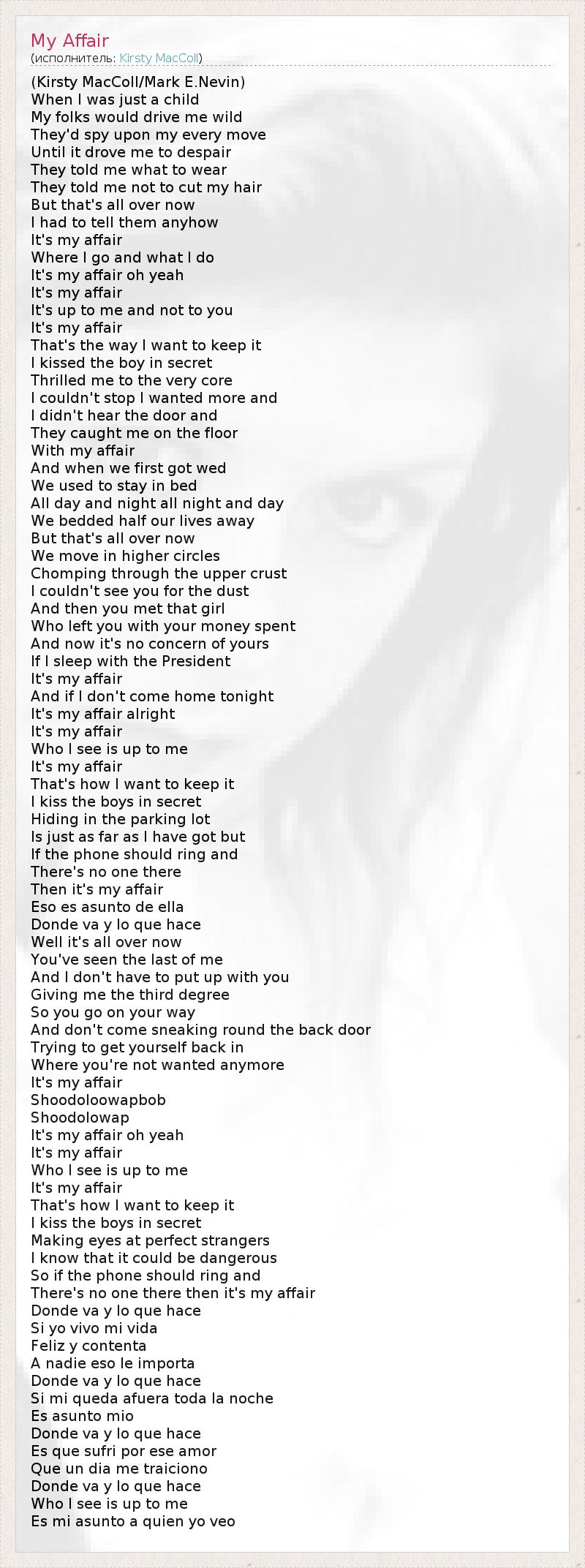 Это интересно:Керсти МакКолл (Kirsty MacColl) (10 октября 1959, Кройдон, Великобритания – 18 декабря 2000, Косумель, Мексика), дочь фолк-певца и автора песен Эвана МакКолла (Ewan MacColl), начала свою собственную музыкальную карьеру еще подростком, выступая с панк-группой the Drug Addix в качестве бэк-вокалистки. Во время одного из концертов группы ее заметили представители легендарного лейбла Stiff Records, которые поспешили подписать... продолжение