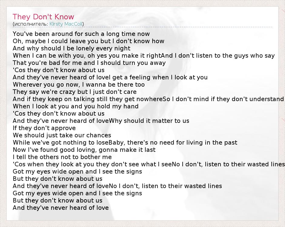 А как ты думаешь, о чем песня "They Don't Know" ?