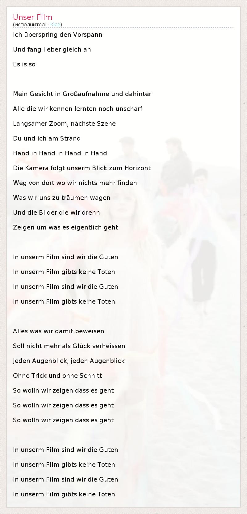 А как ты думаешь, о чем песня "Unser Film" ?