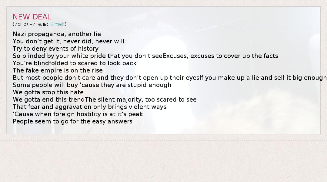 А как ты думаешь, о чем песня "NEW DEAL" ?