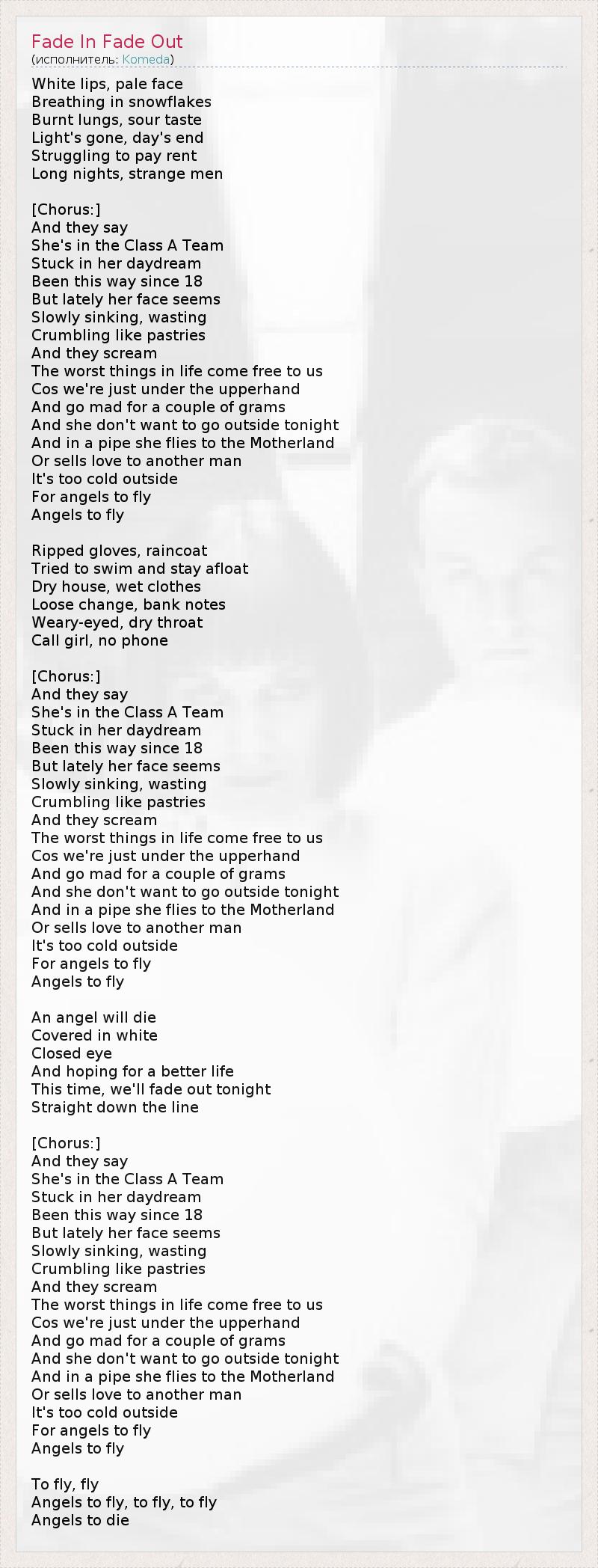 А как ты думаешь, о чем песня "Fade In Fade Out" ?