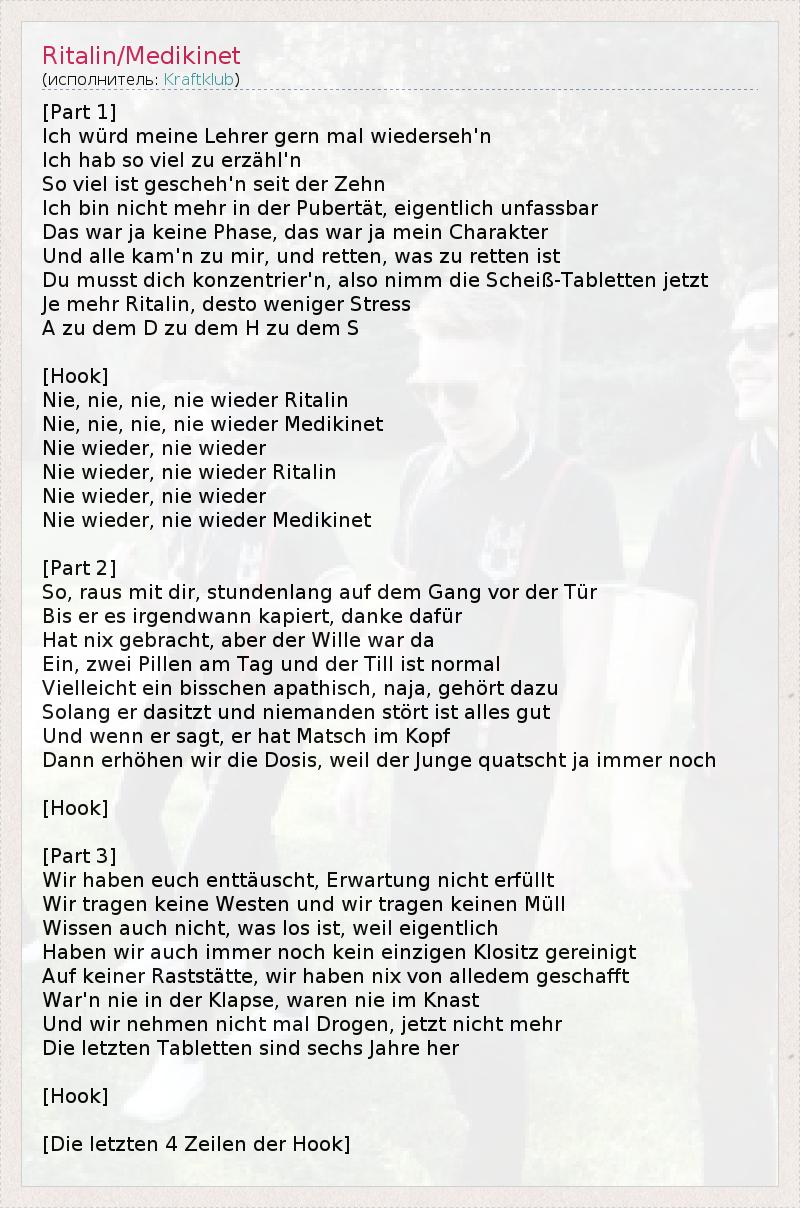 А как ты думаешь, о чем песня "Ritalin/Medikinet" ?