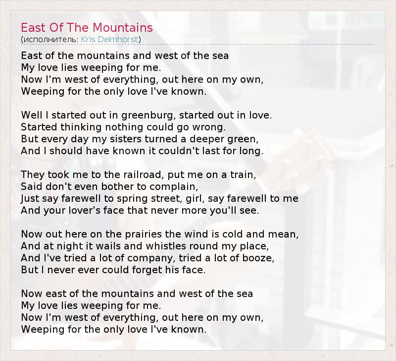 А как ты думаешь, о чем песня "East Of The Mountains" ?