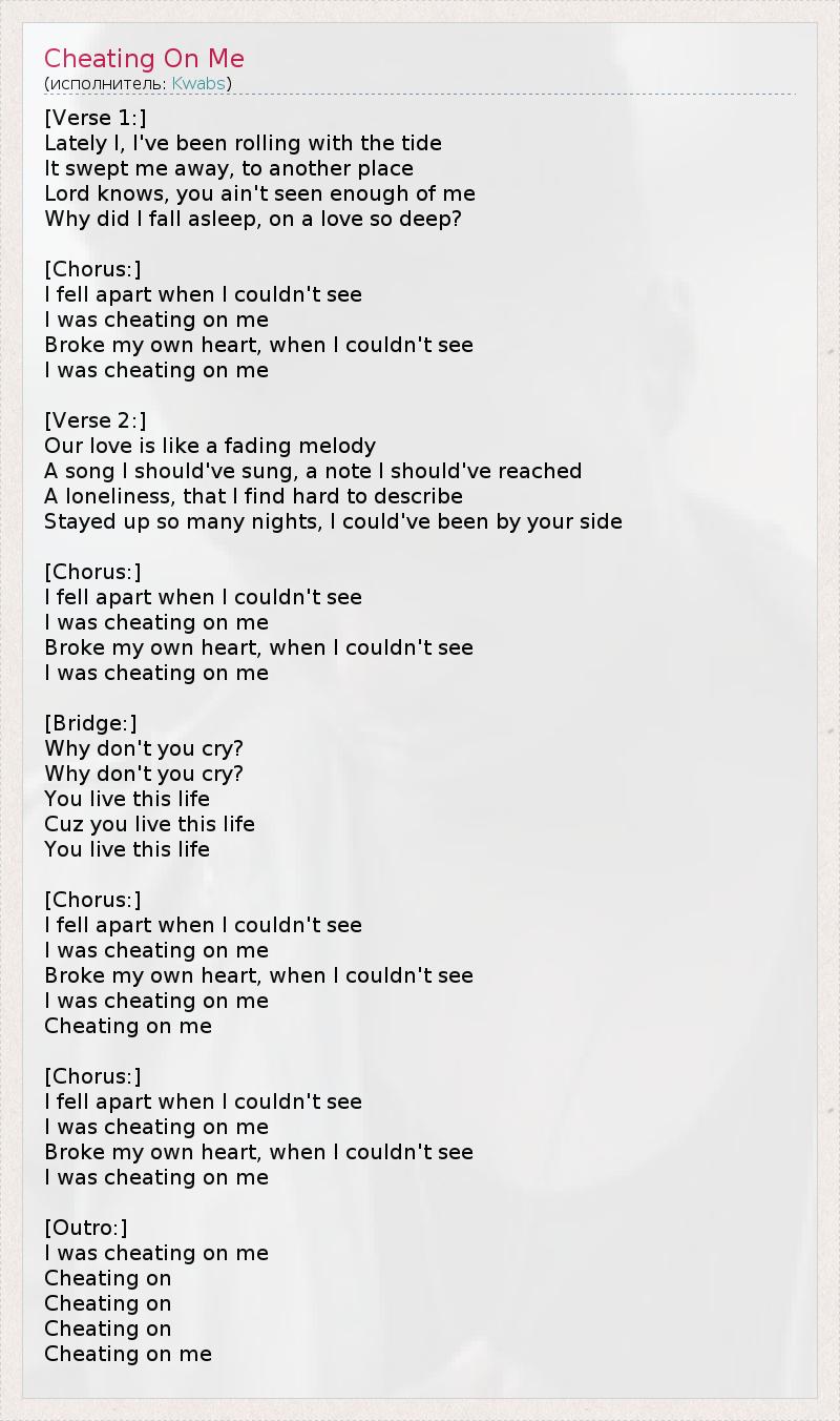 А как ты думаешь, о чем песня "Cheating On Me" ?