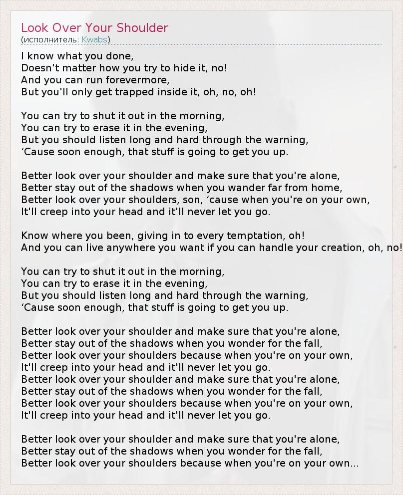 А как ты думаешь, о чем песня "Look Over Your Shoulder" ?