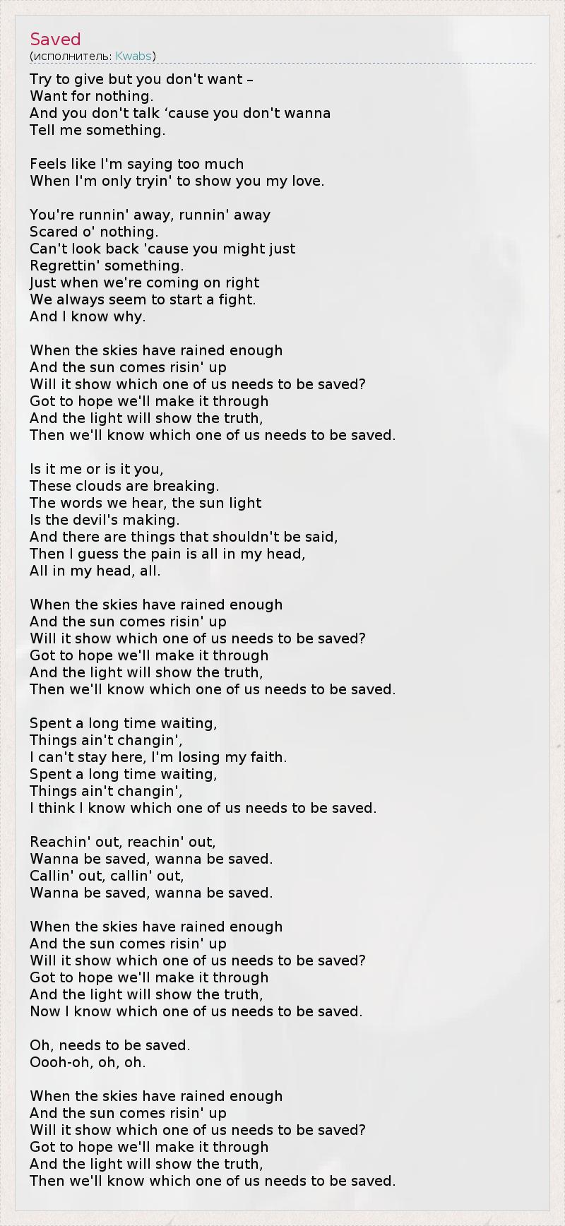1 – Буквально: кто из нас нуждается в спасении / кого из нас надо спасать.
