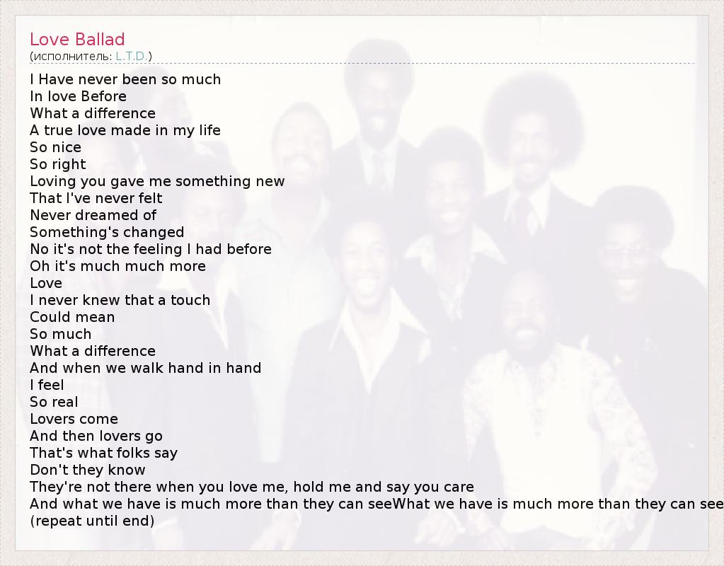 Это интересно:Л. т. д. - американская R&B/фанк группа, известная своими 1977 хит-синглами "(Every Time I Turn Around) Back in Love Again" и "Holding On , а также многочисленными балладами, такие как "Love Ballad" и "Where Did We Go Wrong?".