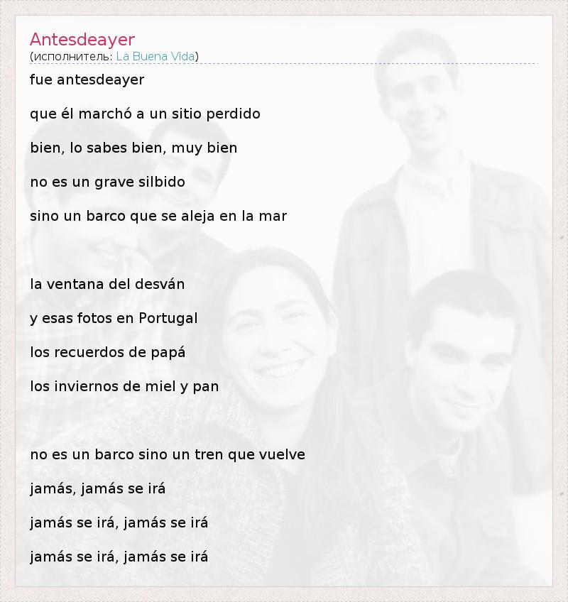 А как ты думаешь, о чем песня "Antesdeayer" ?