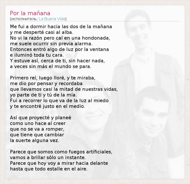 А как ты думаешь, о чем песня "Por la mañana" ?