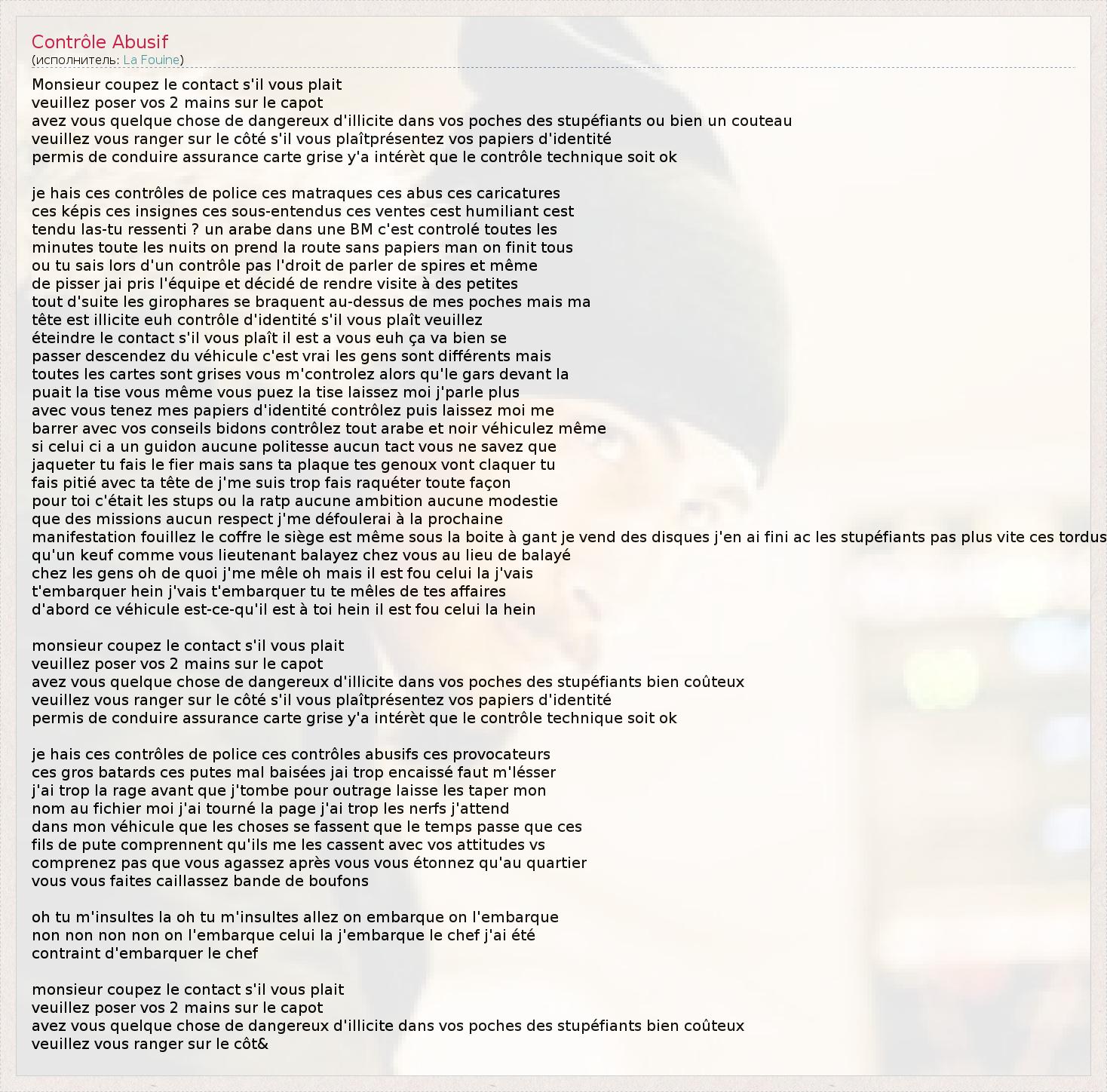 А как ты думаешь, о чем песня "Contrôle Abusif" ?