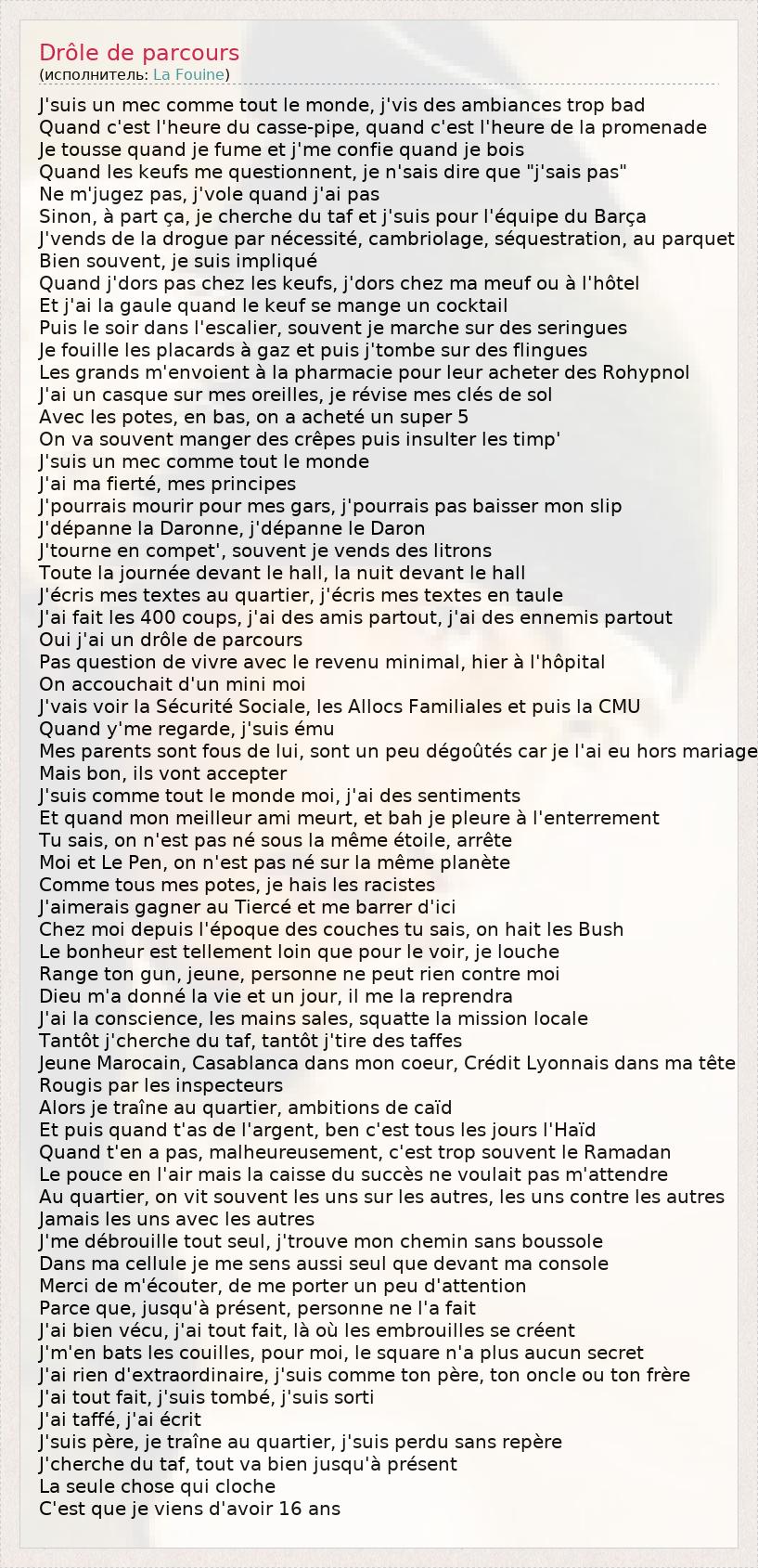 А как ты думаешь, о чем песня "Drôle de parcours" ?