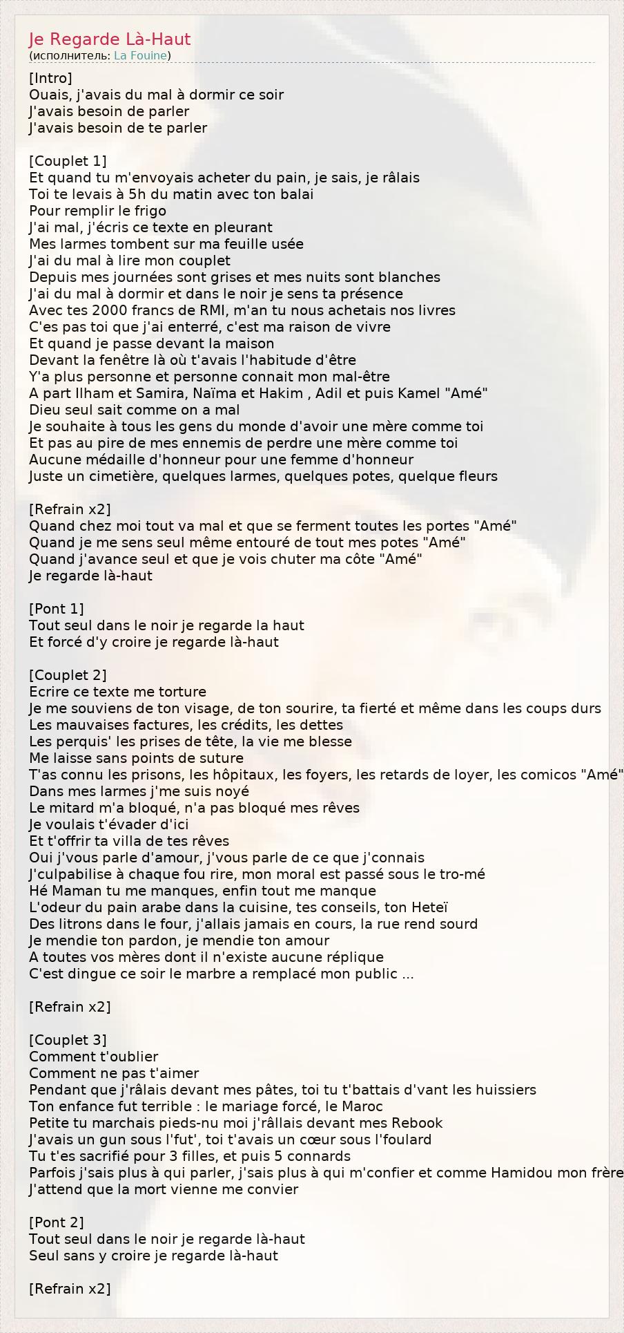 А как ты думаешь, о чем песня "Je Regarde Là-Haut" ?