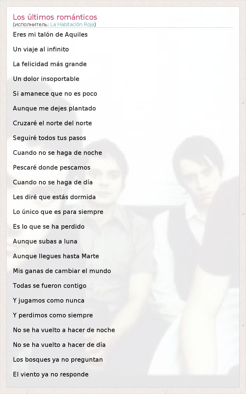 А как ты думаешь, о чем песня "Los últimos románticos" ?