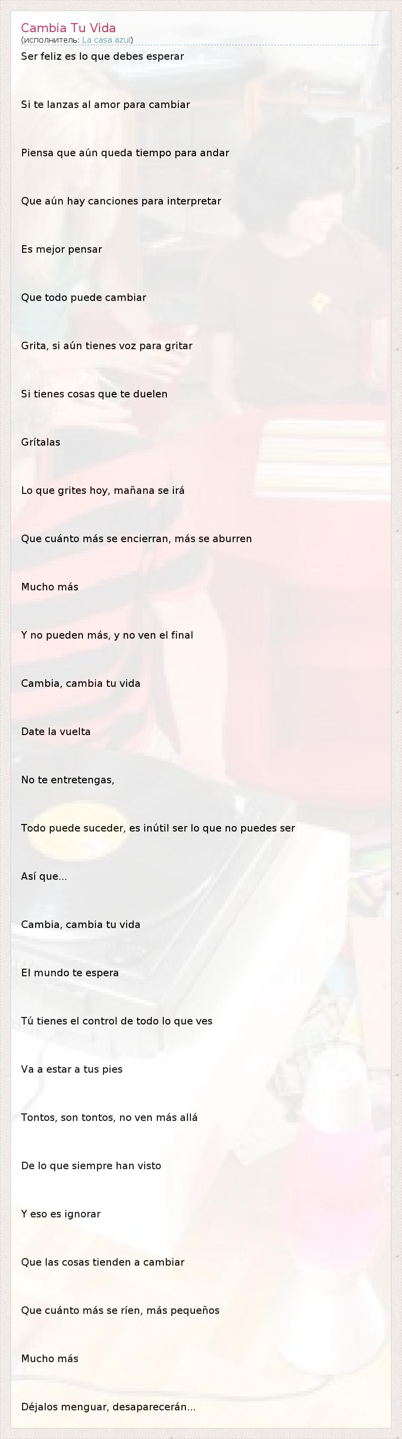 А как ты думаешь, о чем песня "Cambia Tu Vida" ?