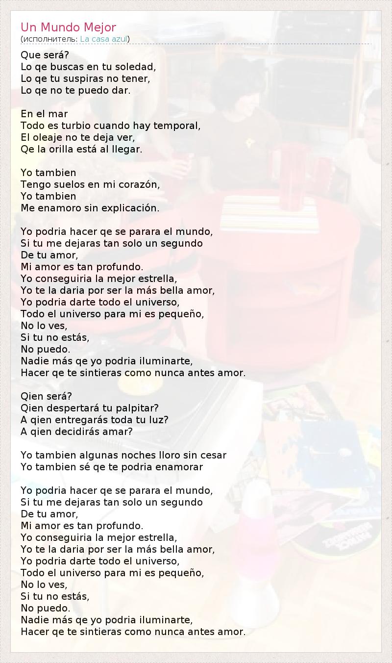 А как ты думаешь, о чем песня "Un Mundo Mejor" ?