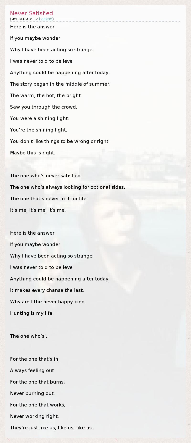 А как ты думаешь, о чем песня "Never Satisfied" ?