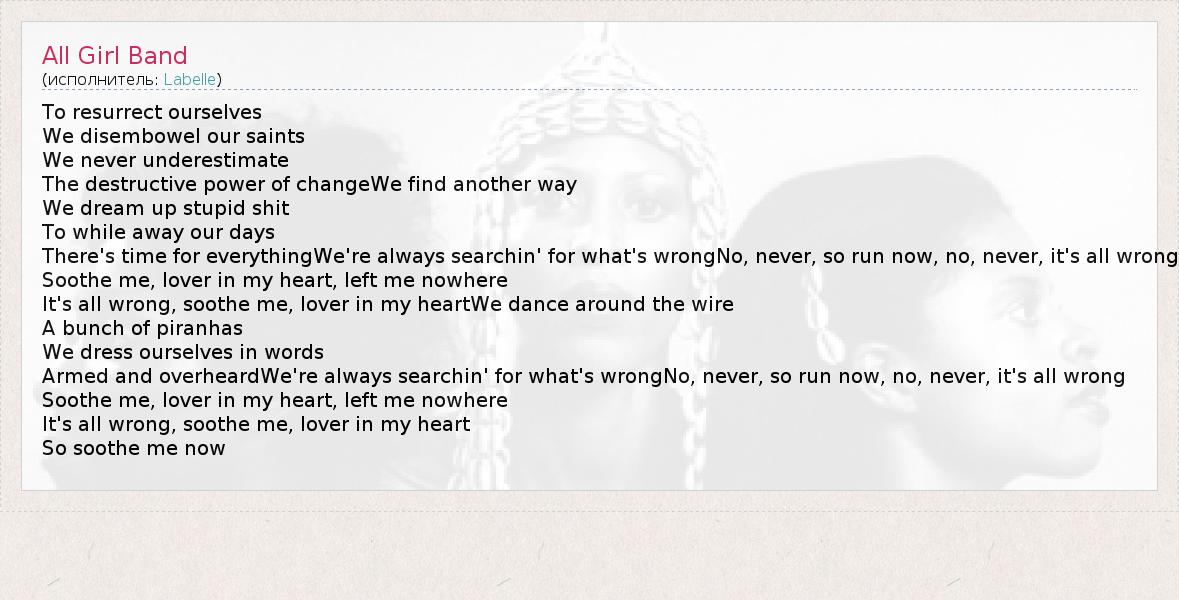 А как ты думаешь, о чем песня "All Girl Band" ?