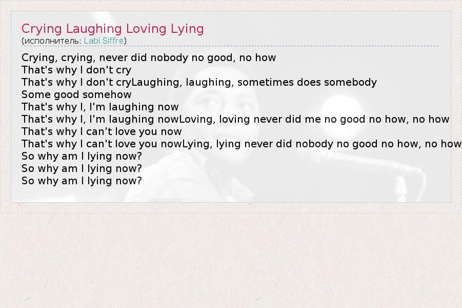 А как ты думаешь, о чем песня "Crying Laughing Loving Lying" ?