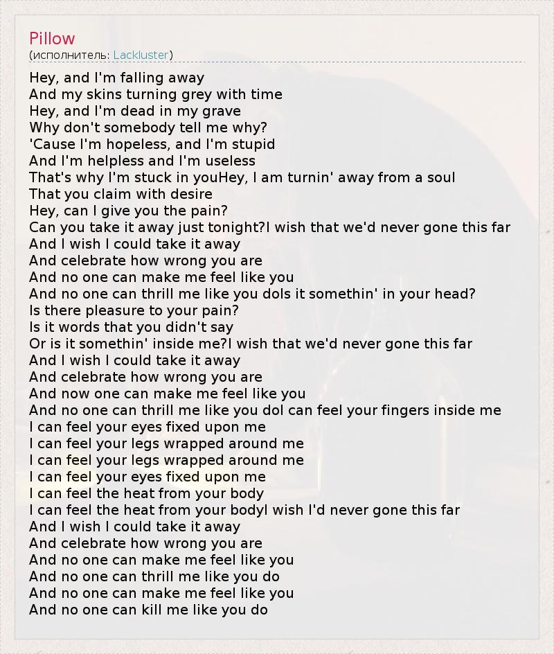 А как ты думаешь, о чем песня "Pillow" ?