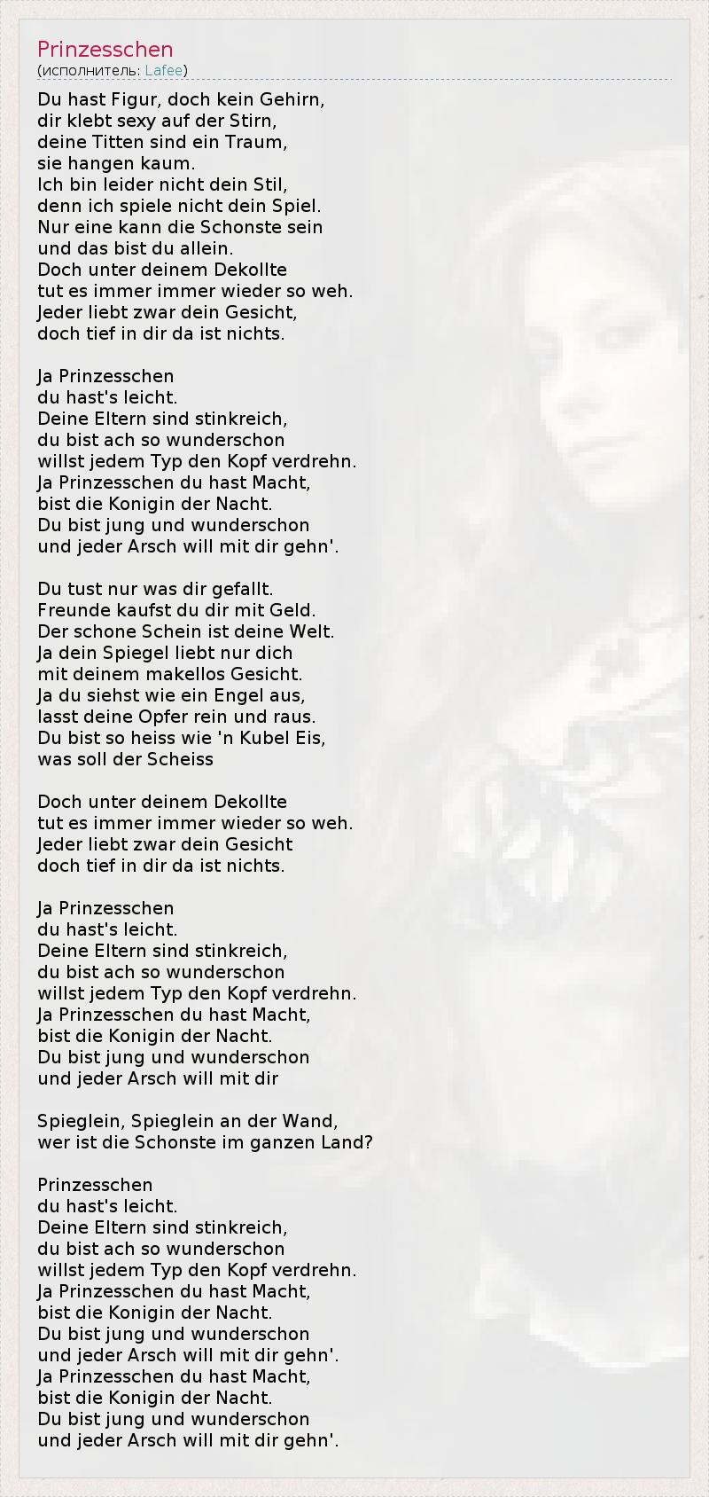 А как ты думаешь, о чем песня "Prinzesschen" ?