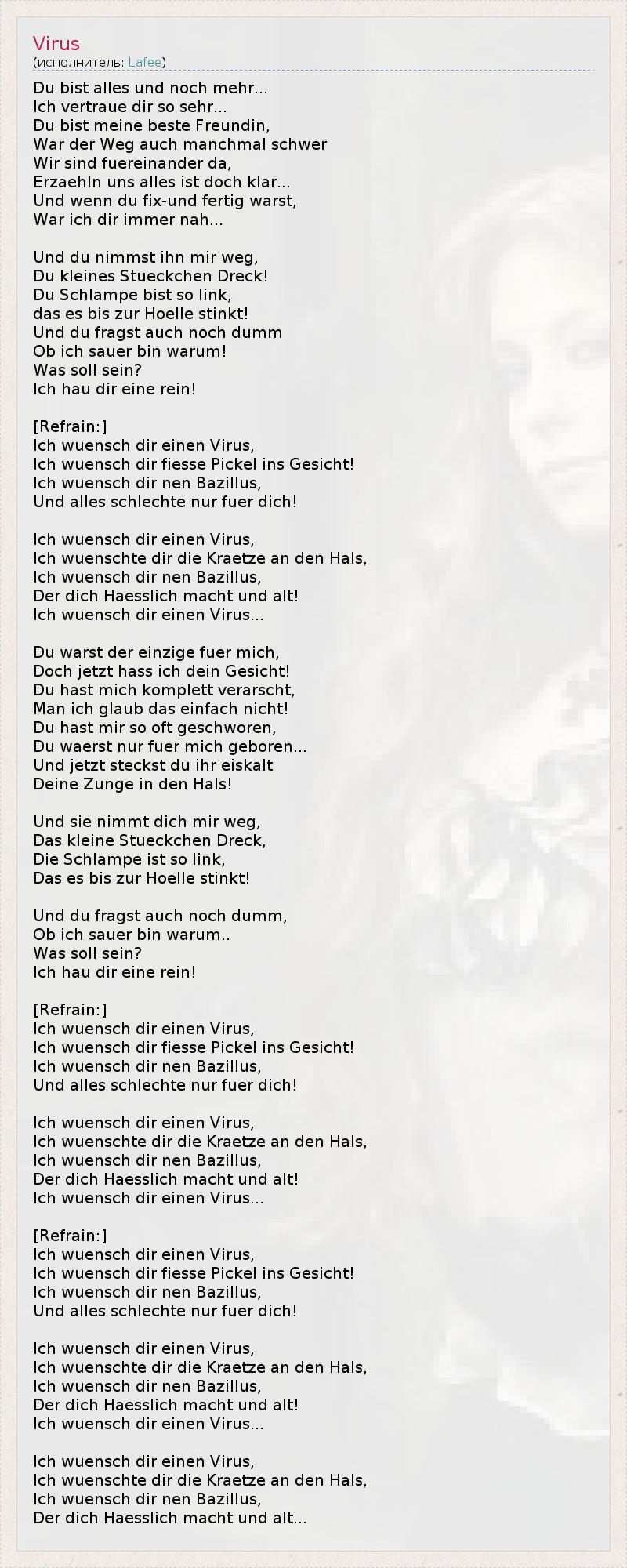 Ich wuensch dir fiesse Pickel ins Gesicht!