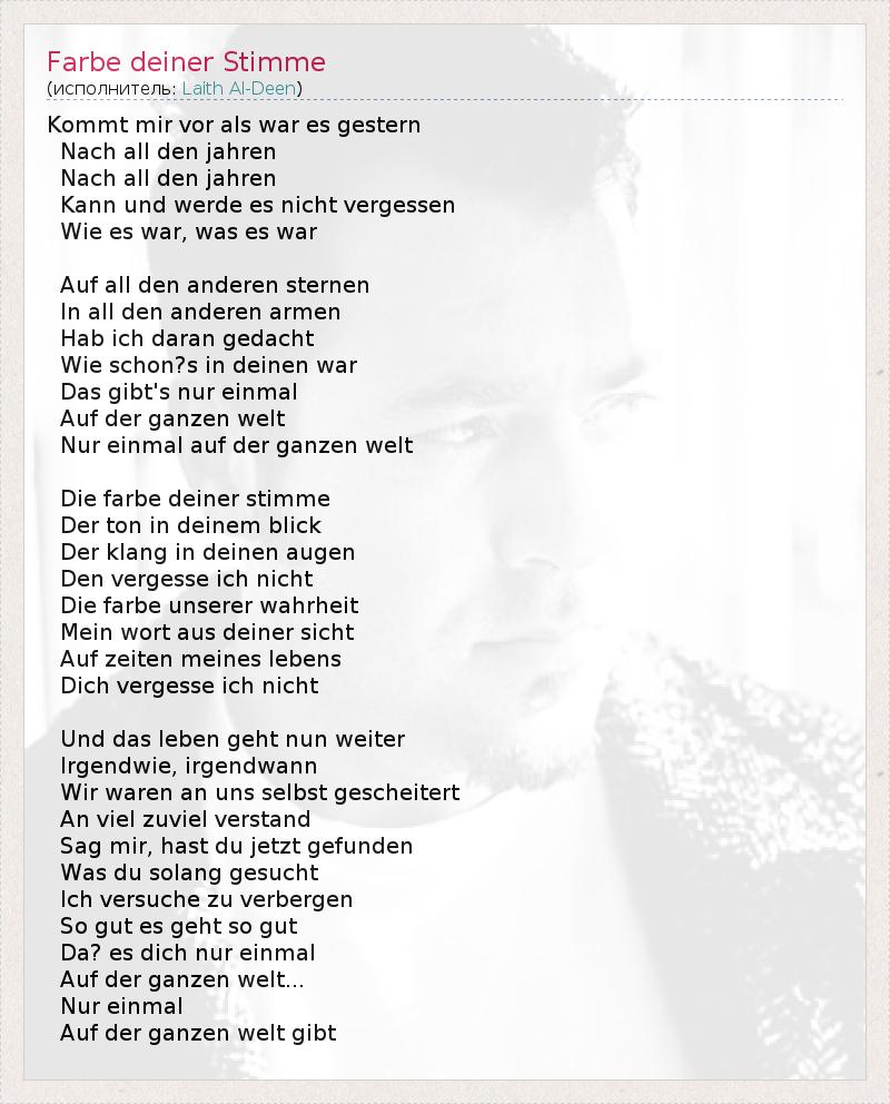 А как ты думаешь, о чем песня "Farbe deiner Stimme" ?