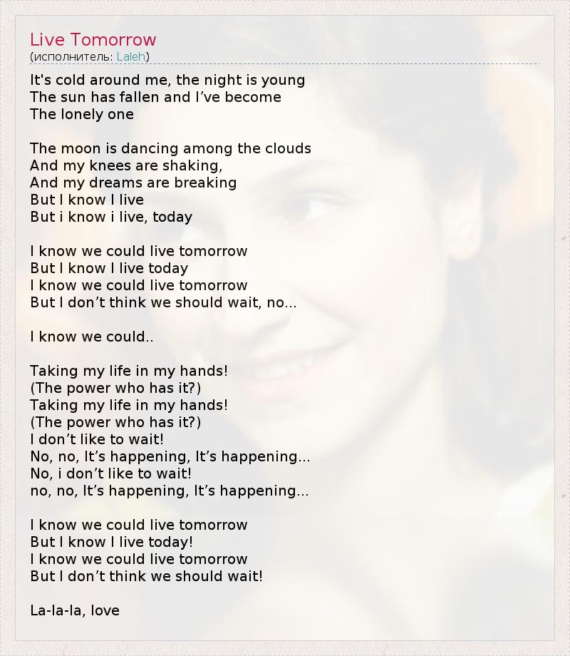 А как ты думаешь, о чем песня "Live Tomorrow" ?