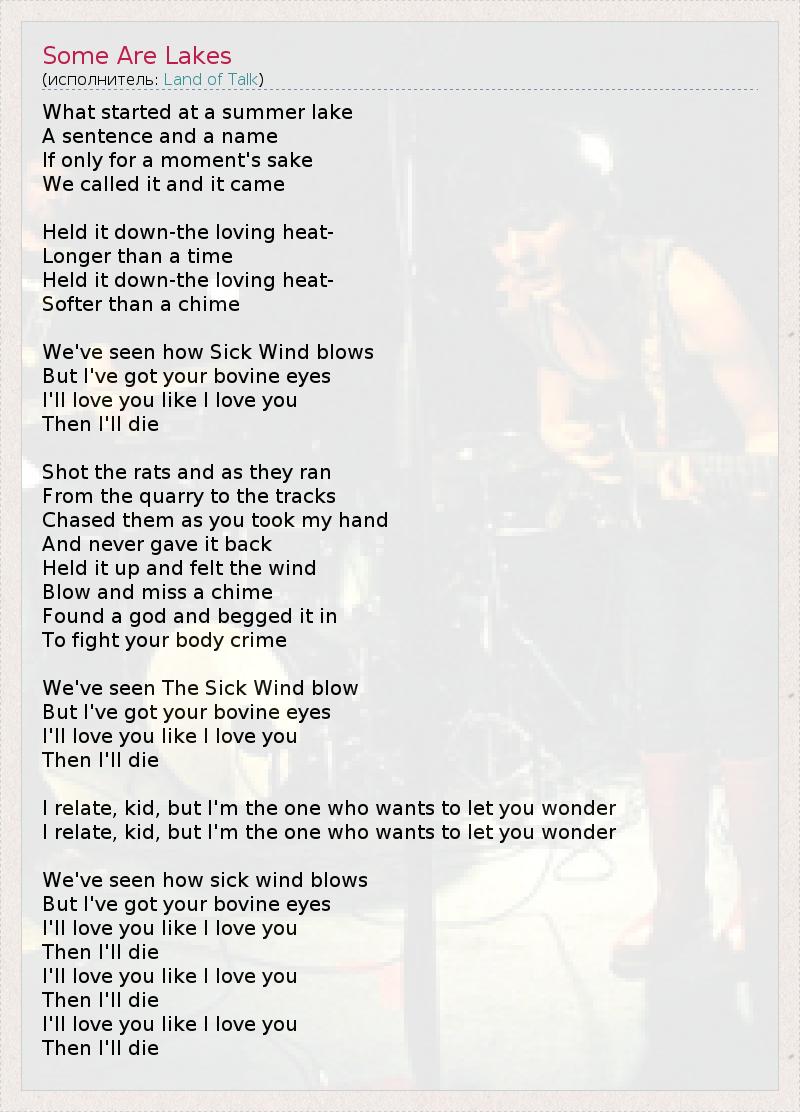 А как ты думаешь, о чем песня "Some Are Lakes" ?