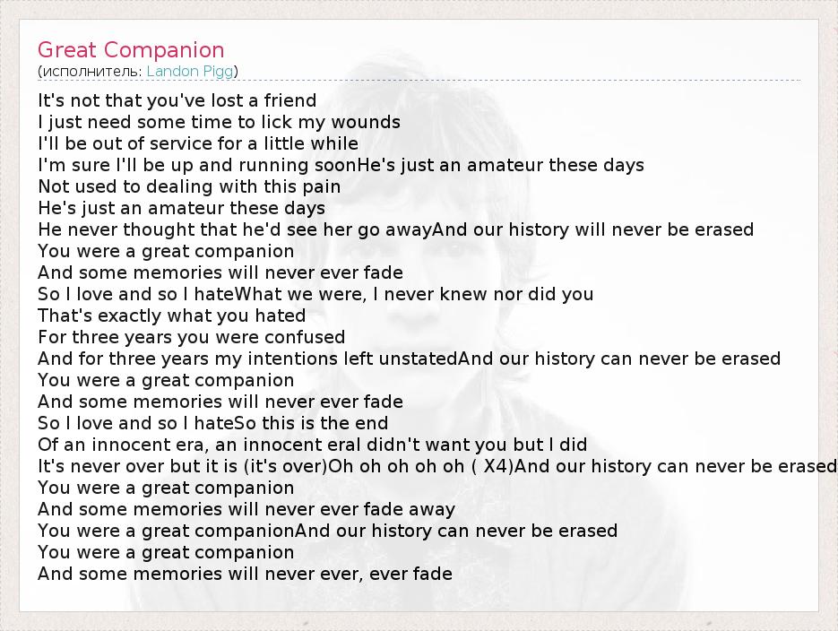 Это интересно:Landon Pigg (born August 6, 1983) is a singer and songwriter from Nashville, Tennessee.Pigg was born in Nashville, Tennessee. His father was a studio veteran and his mother was fond of poetry. When Pigg was a child, his family moved to Oak Park, Illinois, a suburb of Chicago, and he and two of his siblings, Cari-Ann and Gabriel, sang commercial jingles with their father's direction. They all attended Grace Lutheran School in River Forest, Illinois. Landon returned to Nashville as a teenager and applied himself to interests such as algebra and chemistry. He attended Christ Presbyterian Academy in Nashville. During Landon's adolescence, it was his father who offered him informal music... продолжение