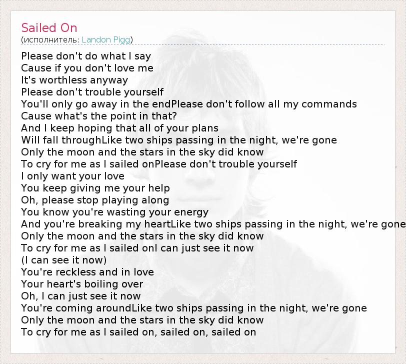 And you're breaking my heartLike two ships passing in the night, we're gone