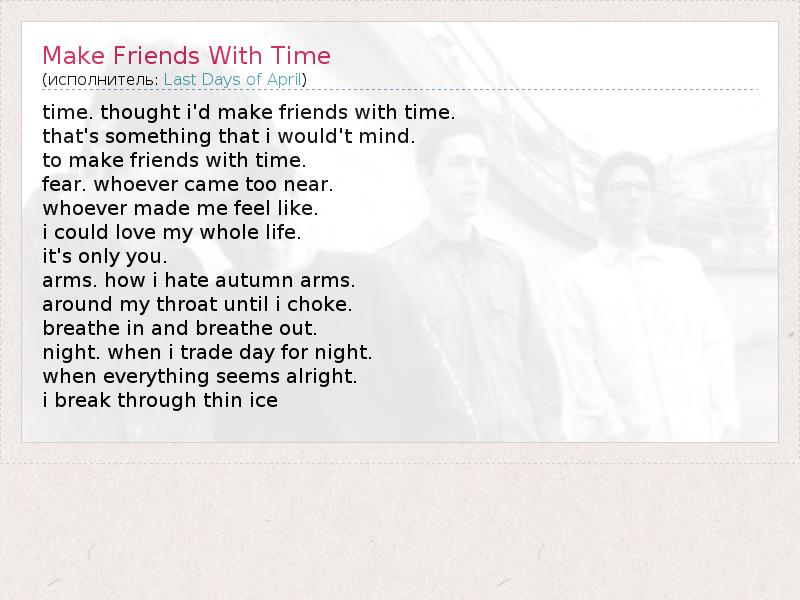 А как ты думаешь, о чем песня "Make Friends With Time" ?