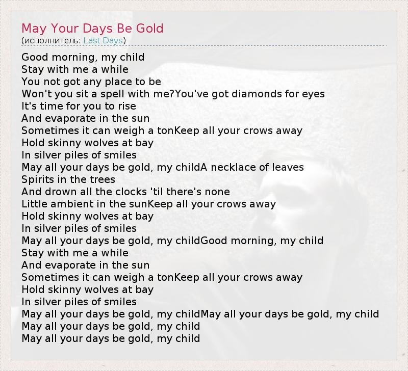 ГлавнаяИсполнителиLast DaysMay Your Days Be Gold
