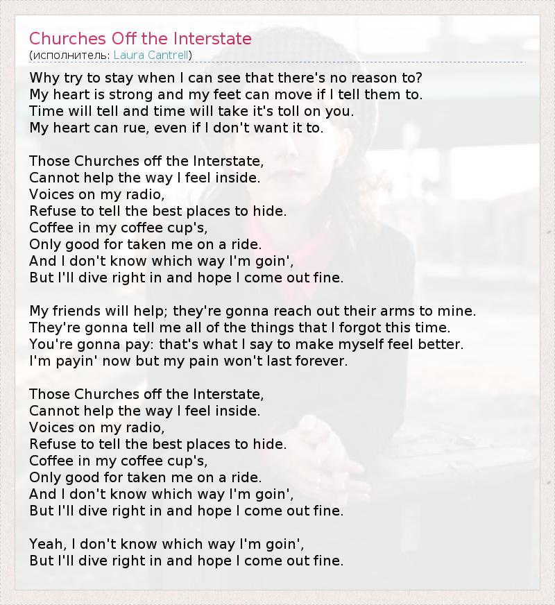 А как ты думаешь, о чем песня "Churches Off the Interstate" ?