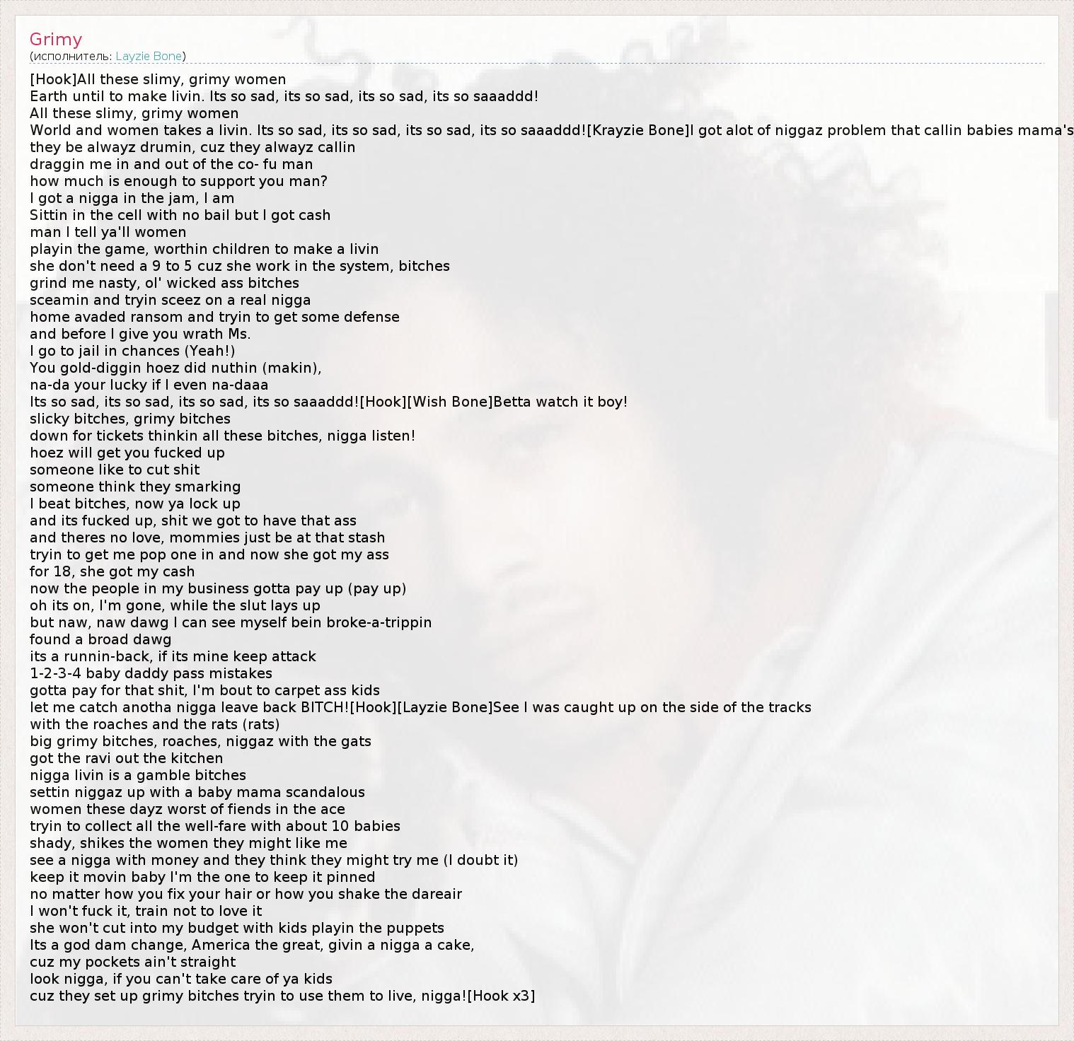 World and women takes a livin. Its so sad, its so sad, its so sad, its so saaaddd![Krayzie Bone]I got alot of niggaz problem that callin babies mama's