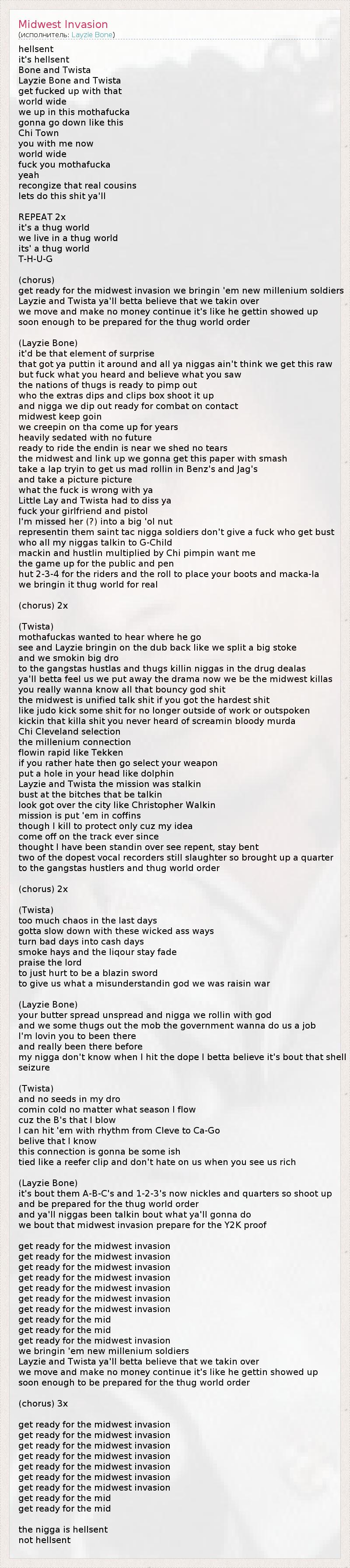А как ты думаешь, о чем песня "Midwest Invasion" ?