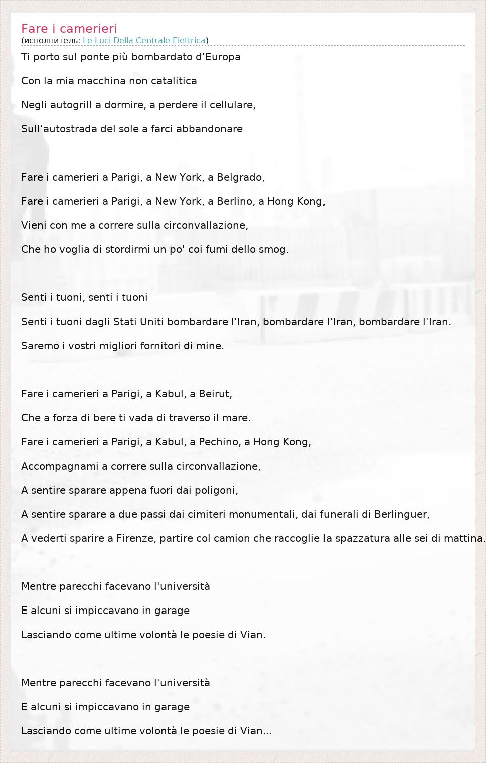 А как ты думаешь, о чем песня "Fare i camerieri" ?